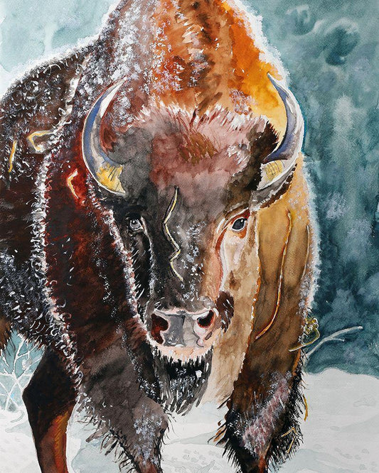 Bison Bull White Modern Wood Framed Art Print with Double Matting by Derr, Wynn