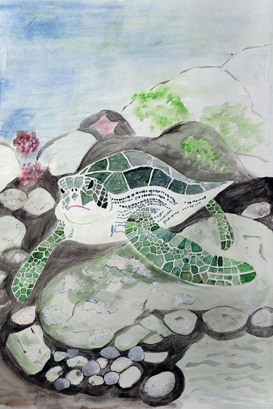 Green Sea Turtle White Modern Wood Framed Art Print with Double Matting by Derr, Wynn