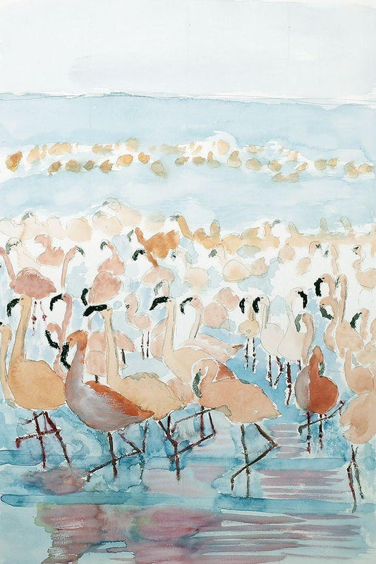 Lesser Flamingos White Modern Wood Framed Art Print with Double Matting by Derr, Wynn