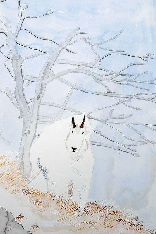 Mountain Goat White Modern Wood Framed Art Print with Double Matting by Derr, Wynn