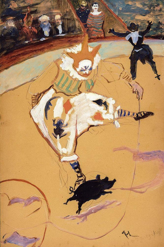 At the Circus Fernando, Medrano with a Piglet White Modern Wood Framed Art Print with Double Matting by Toulouse-Lautrec, Henri de