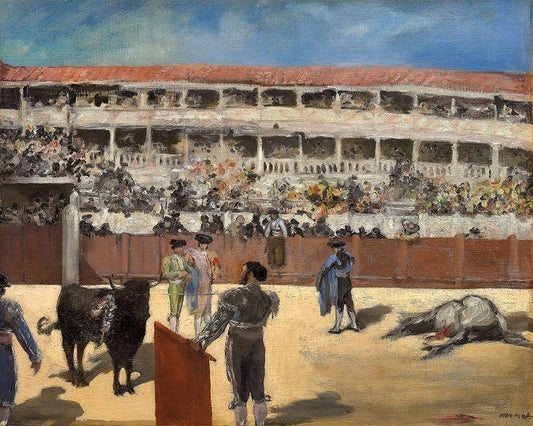 Bullfight White Modern Wood Framed Art Print with Double Matting by Manet, Edouard