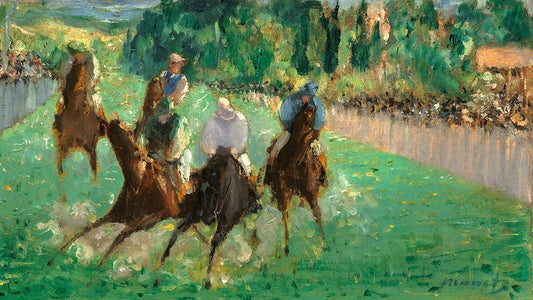Race in the Bois de Boulogne White Modern Wood Framed Art Print with Double Matting by Manet, Edouard