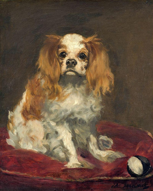 A King Charles Spaniel White Modern Wood Framed Art Print with Double Matting by Manet, Edouard