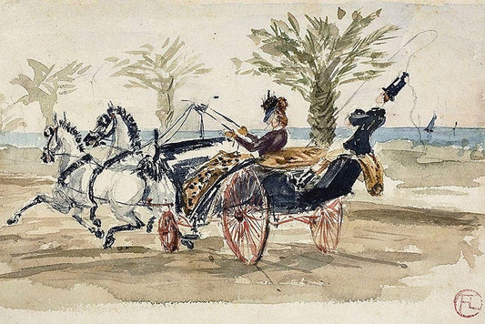 The Promenade des Anglais in Nice White Modern Wood Framed Art Print with Double Matting by Toulouse-Lautrec, Henri de