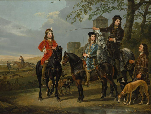 Equestrian Portrait of Cornelis and Michiel Pompe van Meerdervoort White Modern Wood Framed Art Print with Double Matting by Cuyp, Aelbert