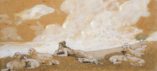 Girl and sheep White Modern Wood Framed Art Print with Double Matting by Homer, Winslow