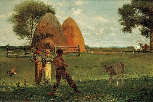 Weaning the Calf White Modern Wood Framed Art Print with Double Matting by Homer, Winslow
