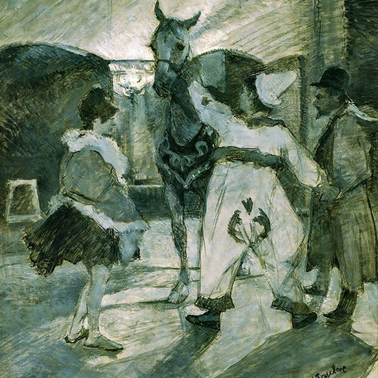 In the Wings at the Circus White Modern Wood Framed Art Print with Double Matting by Toulouse-Lautrec, Henri de