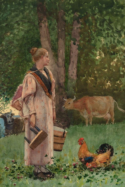 The Milk Maid White Modern Wood Framed Art Print with Double Matting by Homer, Winslow