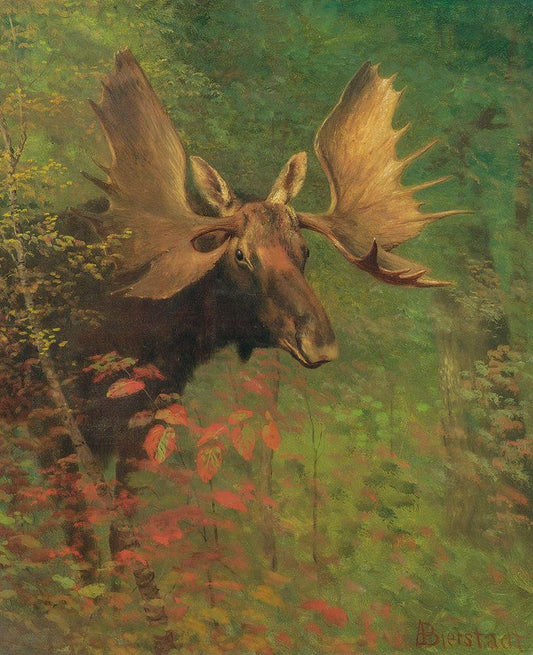 Study of a moose White Modern Wood Framed Art Print with Double Matting by Bierstadt, Albert