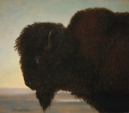 Buffalo Head White Modern Wood Framed Art Print with Double Matting by Bierstadt, Albert