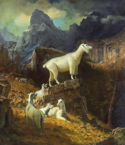 Rocky Mountain Goats White Modern Wood Framed Art Print with Double Matting by Bierstadt, Albert