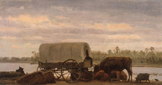 Nooning on the Platte White Modern Wood Framed Art Print with Double Matting by Bierstadt, Albert