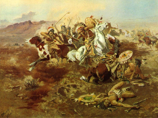 A Desperate Stand White Modern Wood Framed Art Print with Double Matting by Russell, Charles Marion