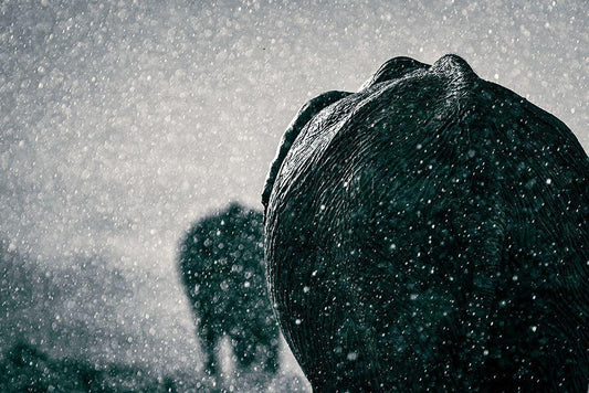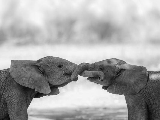 Elephants White Modern Wood Framed Art Print with Double Matting by Martins, Vitor
