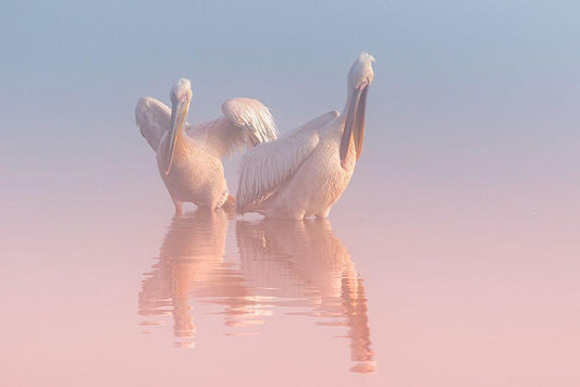 Two Pelicans White Modern Wood Framed Art Print with Double Matting by Rublina, Natalia