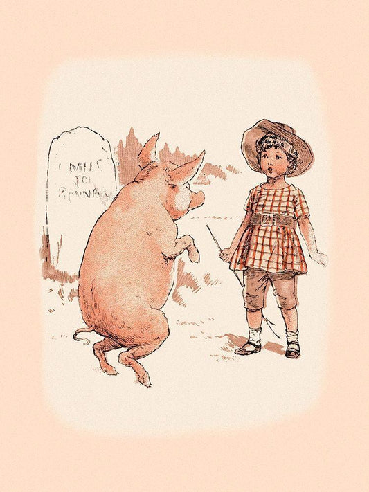 Pigs and Pork: Pig on Hind Legs and Little Girl White Modern Wood Framed Art Print with Double Matting by Advertisement