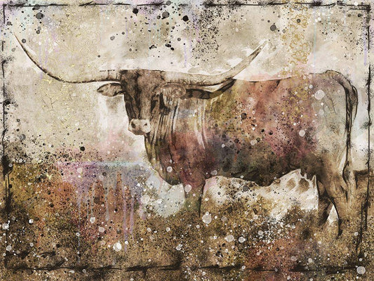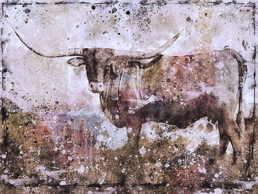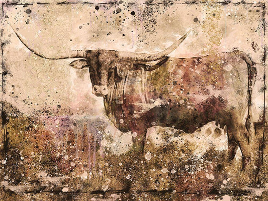 Long Horn ocher tint White Modern Wood Framed Art Print with Double Matting by Wiley, Marta
