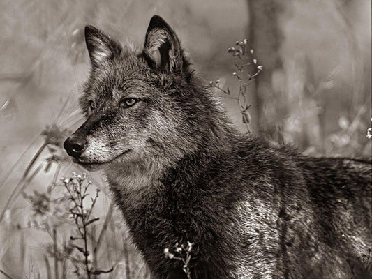 Gray wolf Sepia White Modern Wood Framed Art Print with Double Matting by Fitzharris, Tim
