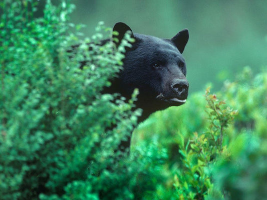 Black bear in underbrush White Modern Wood Framed Art Print with Double Matting by Fitzharris, Tim