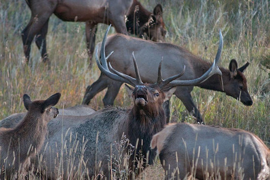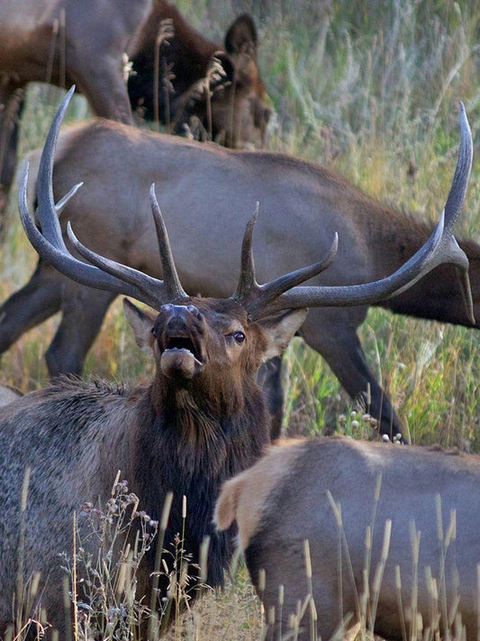 Bull elk bugling with harem-Colorado White Modern Wood Framed Art Print with Double Matting by Fitzharris, Tim