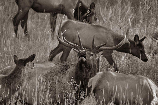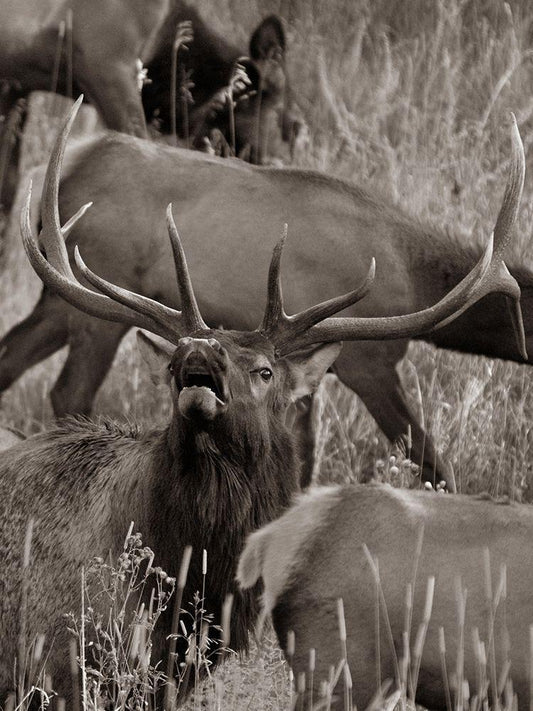 Bull elk bugling with harem-Colorado Sepia White Modern Wood Framed Art Print with Double Matting by Fitzharris, Tim