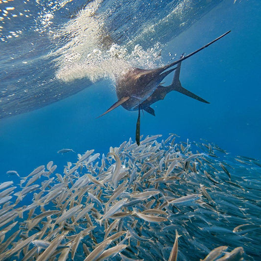 Sailfish and sardines-Isla Mujeres-Mexico White Modern Wood Framed Art Print with Double Matting by Fitzharris, Tim