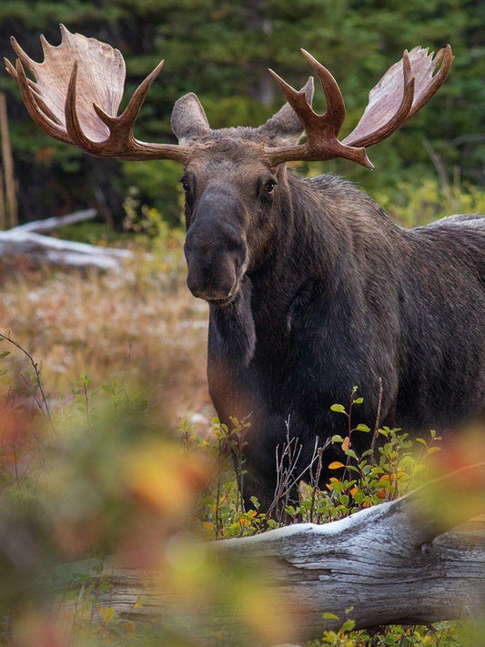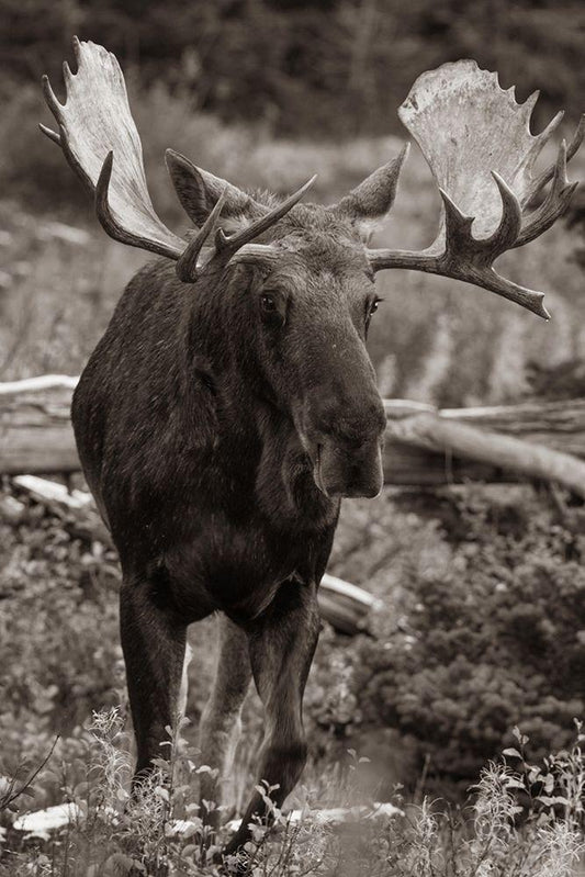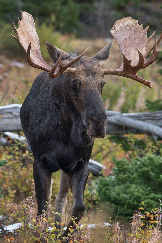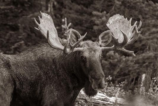 Bull moose-Rocky Mountains Glacier National Park-Montana White Modern Wood Framed Art Print with Double Matting by Fitzharris, Tim