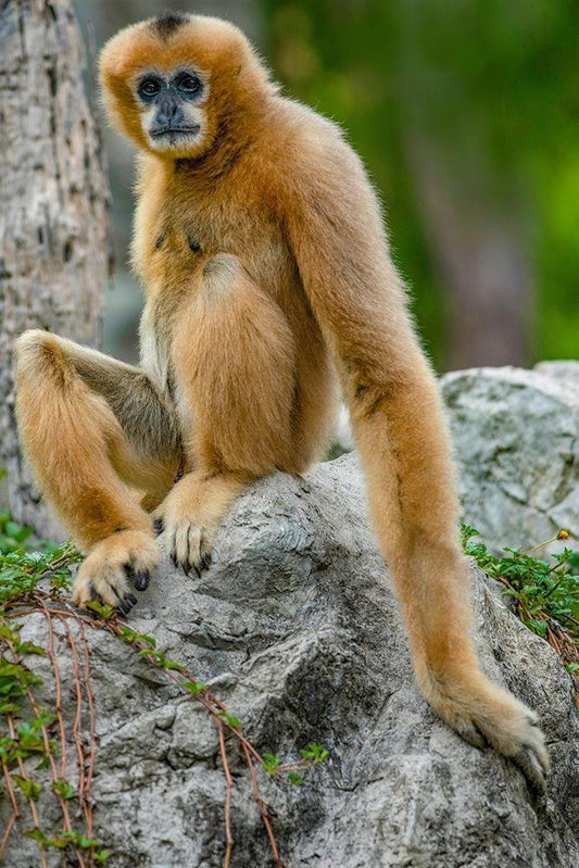 Black-crested Gibbon White Modern Wood Framed Art Print with Double Matting by Fitzharris, Tim