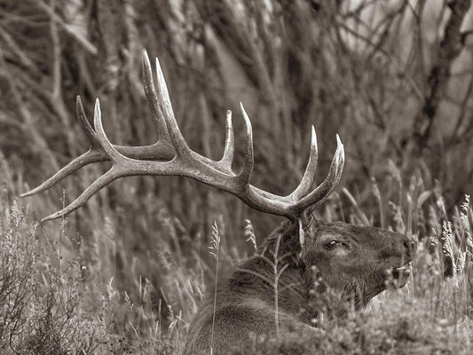 Bull elk-Colorado Sepia White Modern Wood Framed Art Print with Double Matting by Fitzharris, Tim