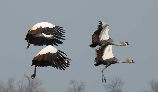 Crested Cranes White Modern Wood Framed Art Print with Double Matting by Bennion, Scott