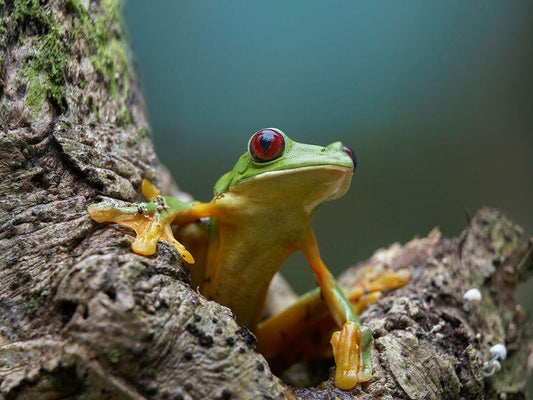 Gliding leaf frog White Modern Wood Framed Art Print with Double Matting by Fitzharris, Tim