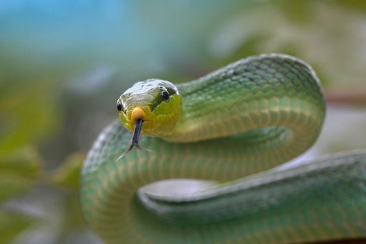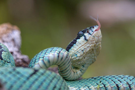 Green pit viper snake White Modern Wood Framed Art Print with Double Matting by Fitzharris, Tim