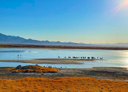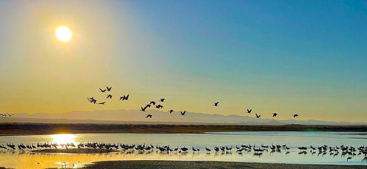 Wilcox-Sandhill Cranes 1 White Modern Wood Framed Art Print with Double Matting by Tenoever, William