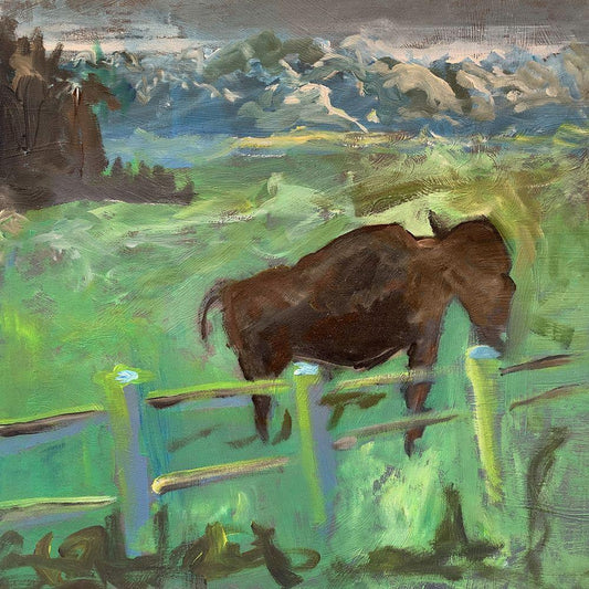 Buffalo I White Modern Wood Framed Art Print with Double Matting by Grayscale