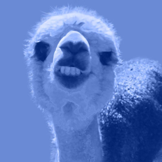 Alpaca Blue White Modern Wood Framed Art Print with Double Matting by Popcorn