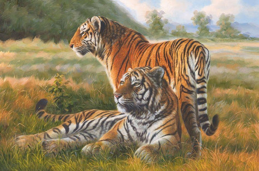 Two Tiger White Modern Wood Framed Art Print with Double Matting by Roland, Henry