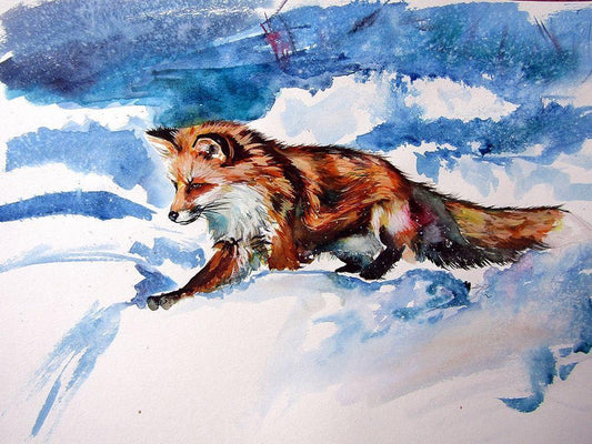 Red Fox in Snow White Modern Wood Framed Art Print with Double Matting by Kovacs, Anna Brigite
