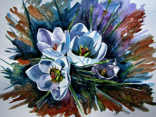 Crocus White Modern Wood Framed Art Print with Double Matting by Kovacs, Anna Brigite