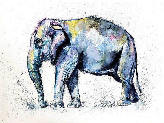 Colorful Elephant White Modern Wood Framed Art Print with Double Matting by Kovacs, Anna Brigite
