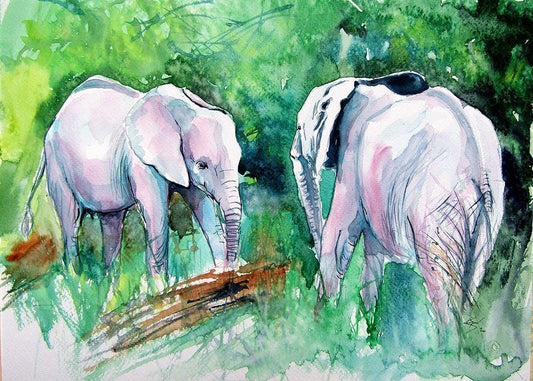 Elephants Meeting White Modern Wood Framed Art Print with Double Matting by Kovacs, Anna Brigite
