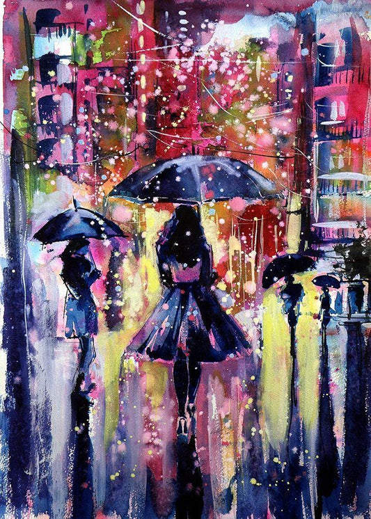 Walk in the Rain V White Modern Wood Framed Art Print with Double Matting by Kovacs, Anna Brigite
