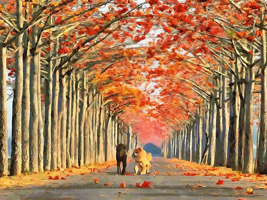 Two Four-legged Friends White Modern Wood Framed Art Print with Double Matting by Medeiros, Celito