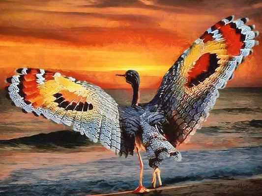 Bird with Butterly Wings White Modern Wood Framed Art Print with Double Matting by Medeiros, Celito