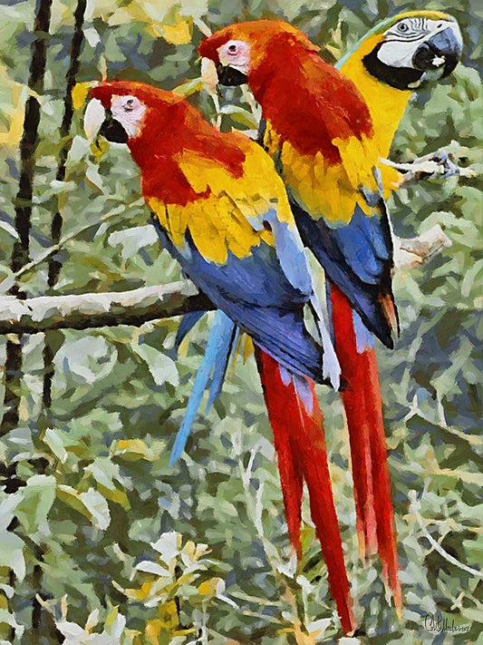Three Parrots White Modern Wood Framed Art Print with Double Matting by Medeiros, Celito
