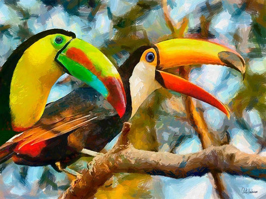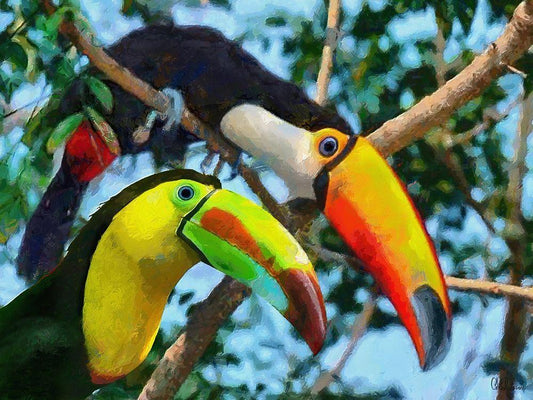 Tucans White Modern Wood Framed Art Print with Double Matting by Medeiros, Celito