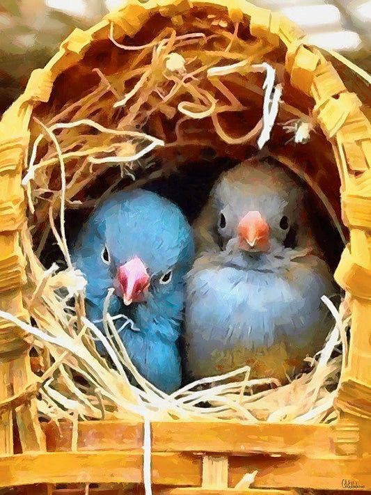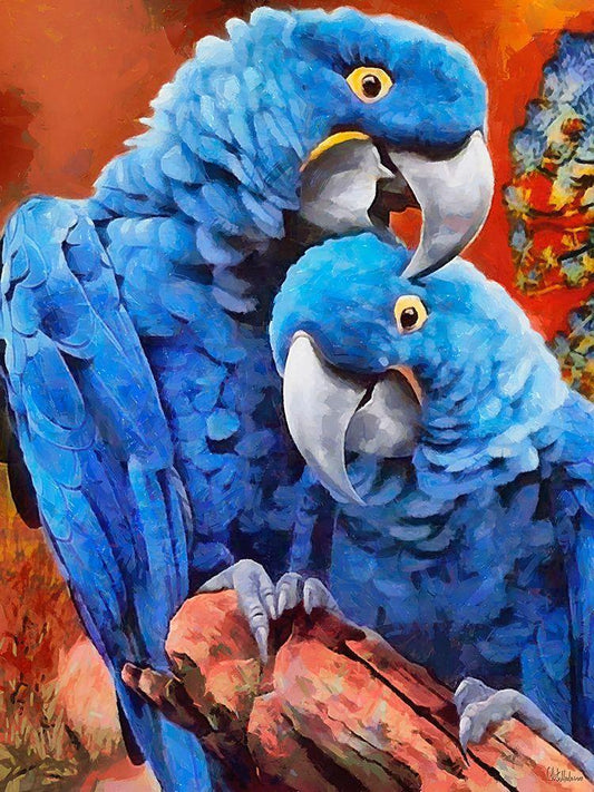 Two Blue Parrots White Modern Wood Framed Art Print with Double Matting by Medeiros, Celito