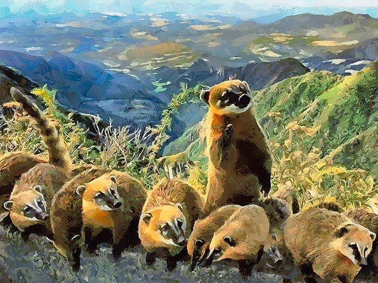 Playing Squirrells White Modern Wood Framed Art Print with Double Matting by Medeiros, Celito
