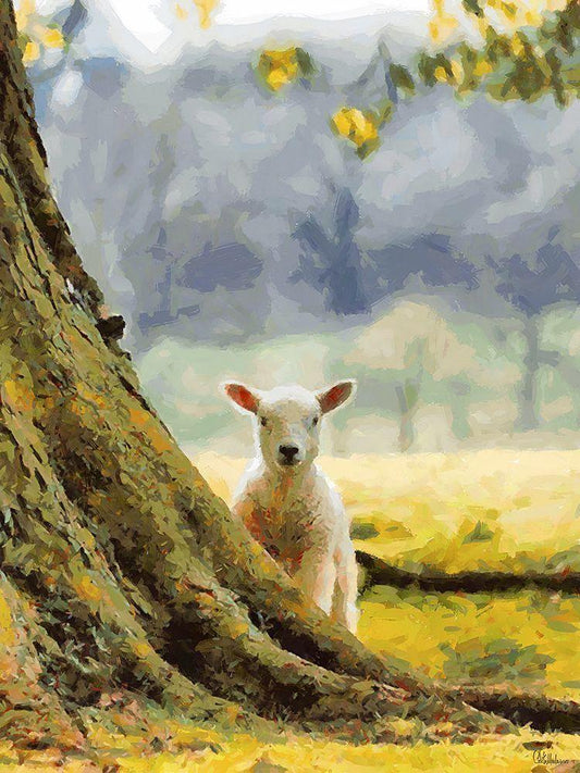Sheep behind the Tree White Modern Wood Framed Art Print with Double Matting by Medeiros, Celito